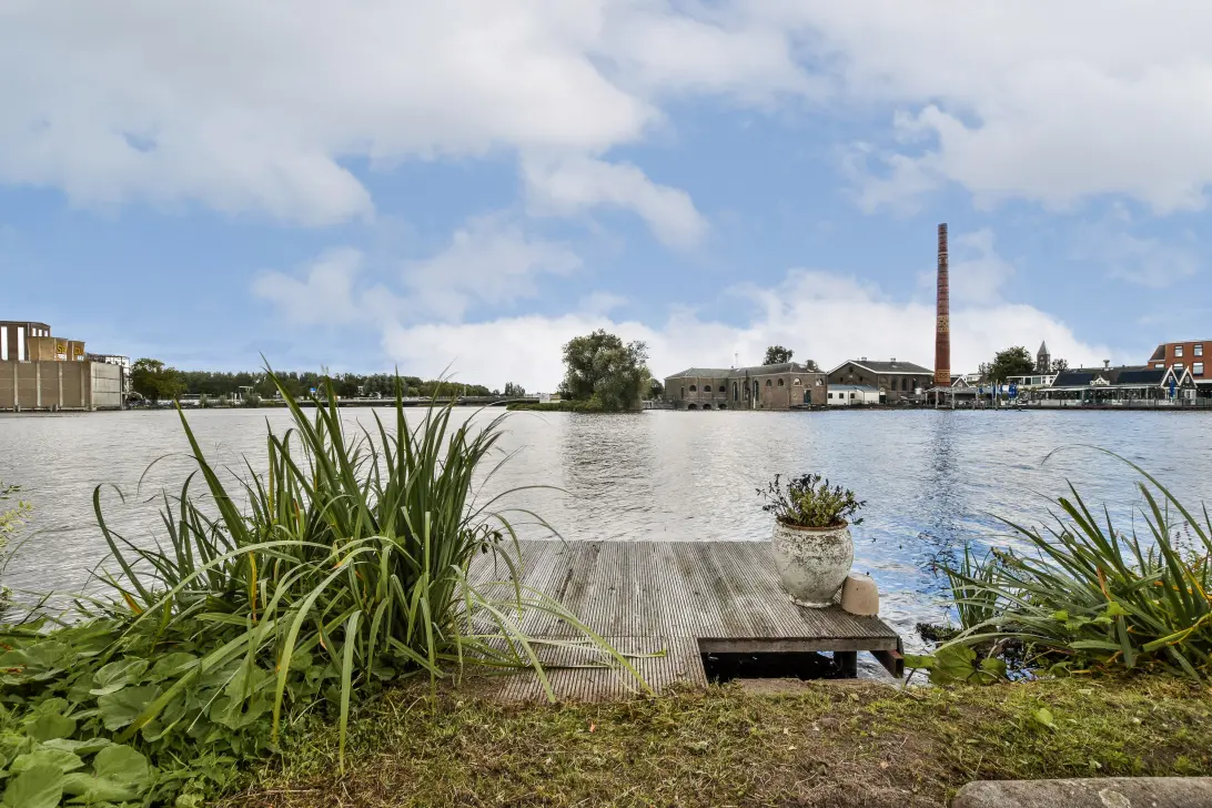 Wonderful living in a unique location on the Ringvaart canal, with panoramic and unobstructed views of the water, 'de Kom', the characteristic Halfweg pumping station, and the iconic Sugar Factory. From the living room you can see the boats sailing peacefully past to Amsterdam or Haarlem – a living painting every day.