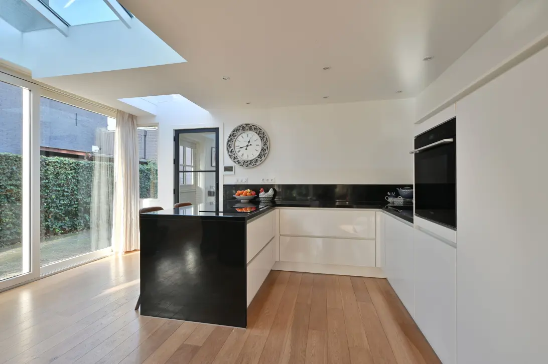 * Royale open keuken met inbouwapparatuur, Quooker, inductiekookplaat en barretje.